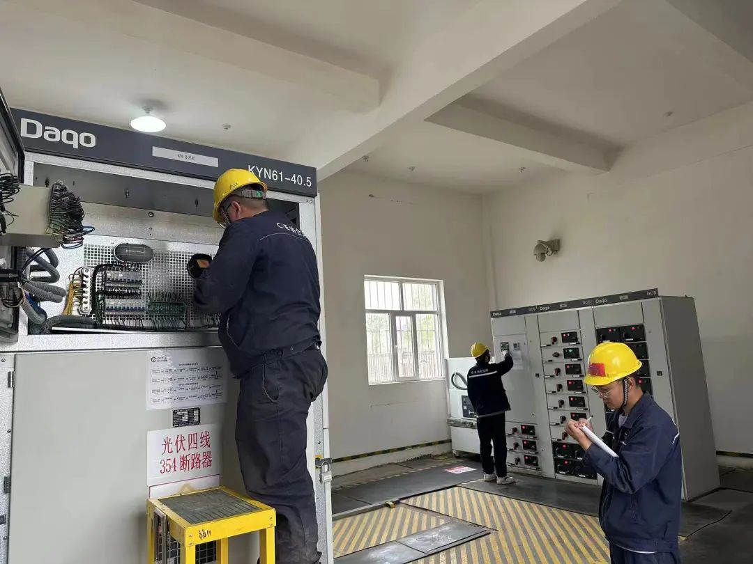 新能源集团76个电站项目,有近450名运维人员坚守在各个电站中,做到“勤检查、勤巡视、勤调整”,切实保证节日期间设备可靠供电。“五一”假期期间,圣水梁光伏电站运维人员不间断开展设备巡检,充分应用红外成像、状态监测等仪器,重点检查站内输、变、配电设施设备运行状况,及时消除设备隐患,确保站内设备节日期间安全稳定运行。同时站内提前做好应急抢修人员、车辆、备品备件等部署,安排好应急抢修队伍,一旦发生影响供电或对保电设施安全运行造成影响的故障,确保在第一时间进行消除。