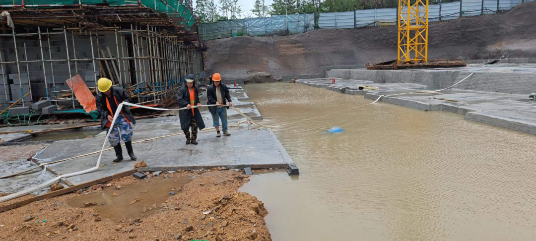 7月23日上午,产城集团青岛科技职业学院一期工程6#7#楼项目汛期安全领导小组工作人员对6#楼、7#楼地下室及变配电室等现场关键区域开展安全巡查,同时对施工现场带班值班制度落实情况、应急物资准备情况进行检查,对因暴雨造成的场内积水及排水不畅等问题,汛期安全领导小组立即组织人员、机械等紧急投入积水抽排工作,同时加强对各易渗漏点的监控,确保汛期施工现场安全平稳有序。