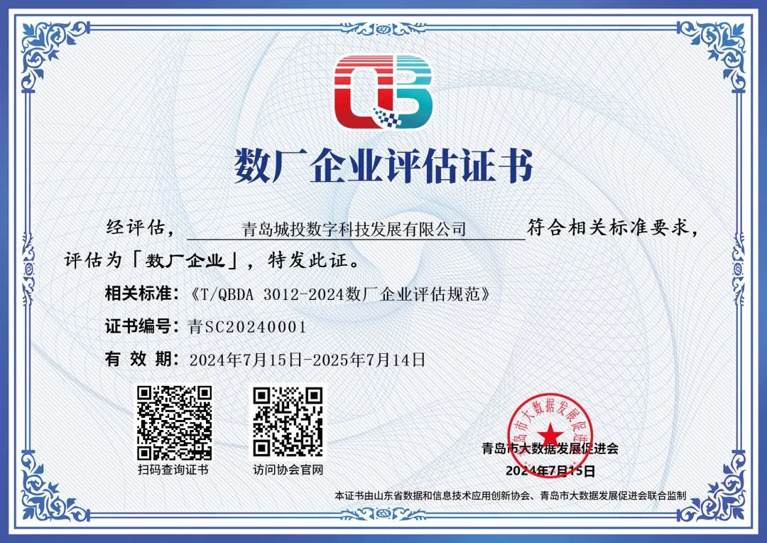(图为青岛市数厂企业证书)