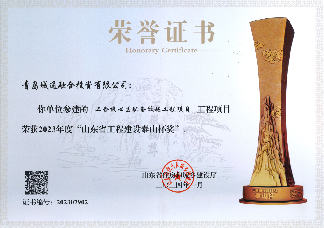 青岛·上合之珠国际博览中心项目被山东省住房和城乡建设厅授予“2023年度山东省工程建设泰山杯”荣誉。