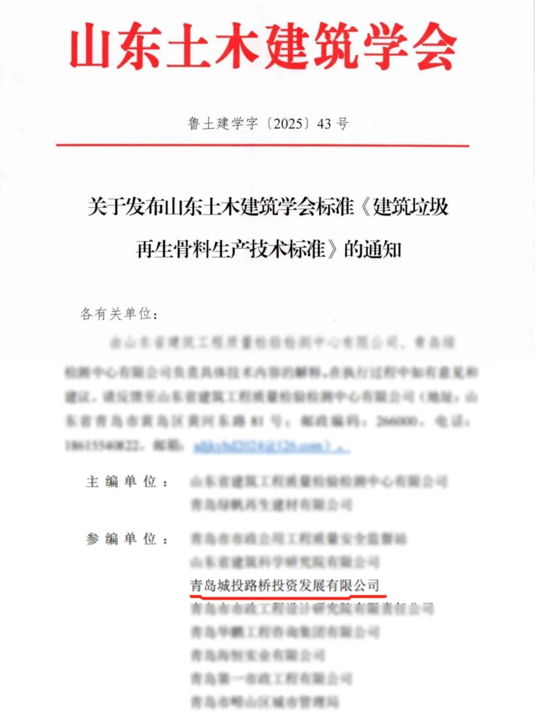 近日,由青岛城投城市更新集团旗下路桥公司参编的山东土木建筑学会标准《建筑垃圾再生骨料生产技术标准》正式发布实施,标志着我省建筑垃圾资源化利用迈出关键一步,也为市政工程绿色低碳发展提供了“青岛方案”。