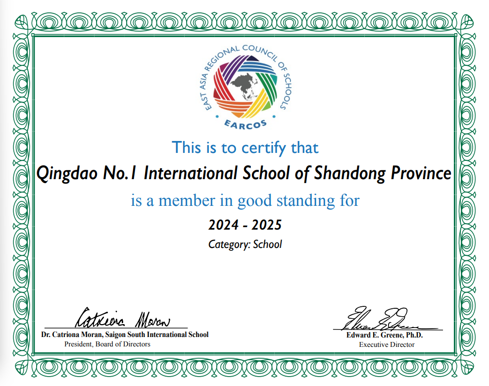 山东省青岛第一国际学校荣获东亚国际学校协会(EARCOS)资质认证与国际学校委员会(CIS)成员资格认证