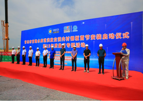 近日,官路水库工程泄洪放空洞内衬钢板首节安装正式启动。胶州市水利局局长贾铭利,葛洲坝集团三峡分公司党委常委、副总经理屈卫星,青岛城投集团官路水库公司负责人及工程建设人员共计60余人参加启动仪式。