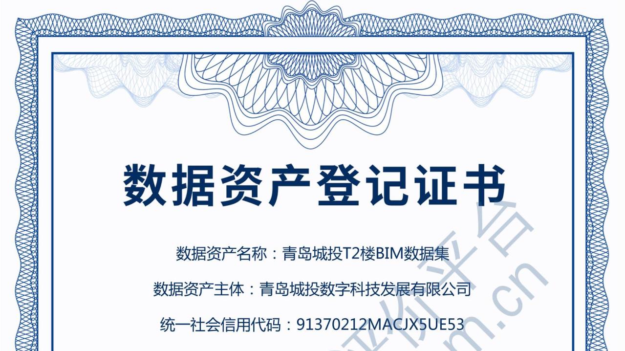 12月21日,青岛城投集团旗下数科公司将数据资产计入公司财务报表,圆满完成了“青岛城投T2楼BIM数据集”数据资产入表工作,成为青岛市首例实现BIM领域数据资产入表的成功案例,为后续数据资产业务拓展打下坚实基础。(图为数据资产登记证书)此次数据资产入表的“青岛城投T2楼BIM数据集”,由城投集团旗下商业管理集团授权使用,该BIM数据集包含两千余万条基础数据,经过深层治理、加工衍生及场景赋能等多道增值环节获得新增经济