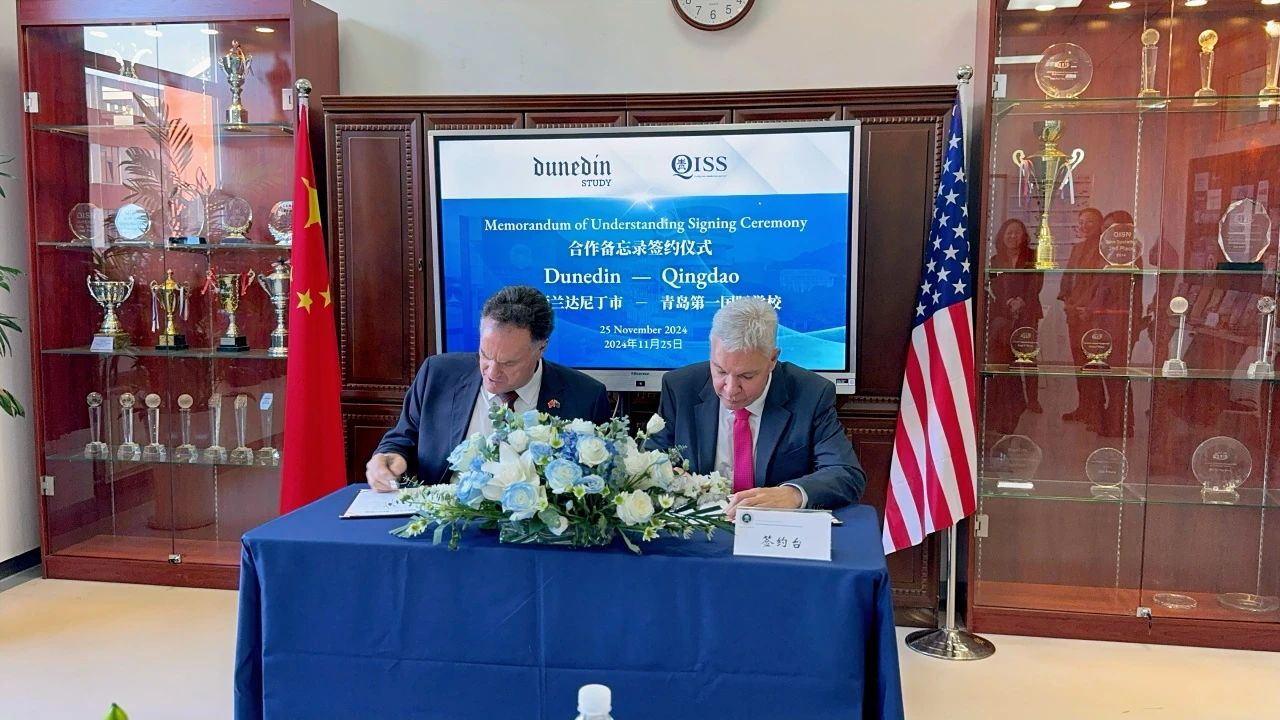 11月26日,新西兰达尼丁市市长Jules Radich率领代表团访问山东省青岛第一国际学校。此次访问旨在增进两市在教育领域的交流与合作,推动双方在多个方面的友好合作关系。青岛市委外办副主任丁安辉,青岛城投集团党委委员、副总经理殷淙出席活动。(图为签约仪式的现场照片)在访校过程中,殷淙代表青岛城投集团对Jules Radich市长一行的到来表示了热烈欢迎,阐释了集团对推动两市教育事业合作良好愿景,介绍了集团在教育领域的投资