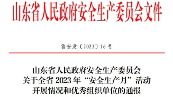 青岛城投集团荣获“全省2023年安全生产月活动优秀组织单位”